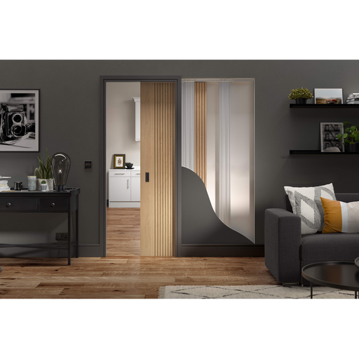 Transform your interiors with the FLUSSO POCKET DOOR SET SINGLE—a smart, contemporary alternative to traditional swing doors. Designed to slide nea...