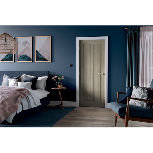 The Light Grey Laminate Mexicano door offers a timeless classic with a modern twist. Its square-cut grooves create a vertical panelled design that ...