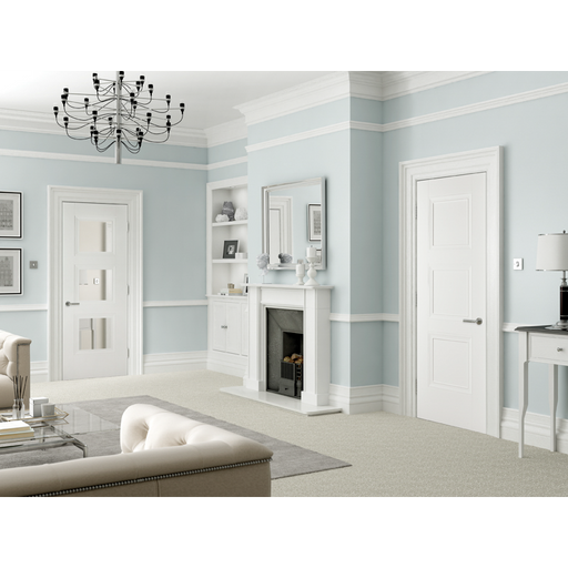 The WHITE MOULDED MAYFAIR 4P internal door is a timeless classic, perfect for enhancing the elegance of any traditional home. Crafted from a durabl...