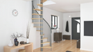 Enhance your interior with the SIGMA Spiral Staircase, a contemporary masterpiece combining natural beech wood and sleek grey metal. Featuring 12 varnished lamellar beech treads plus a triangular landing platform, the staircase offers 13 risers for a maximum height of 309 cm. Adjustable step rise (22 to 23.8 cm) and a robust grey lacquered banister with 4 balusters per tread ensure both safety and comfort.