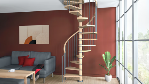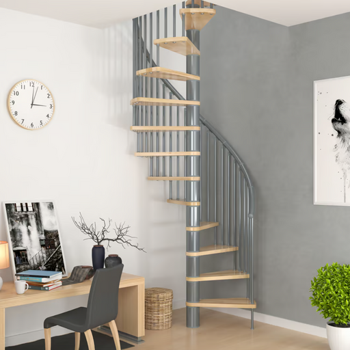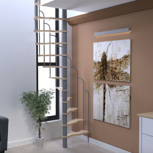 Enhance your interior with the SIGMA Spiral Staircase, a contemporary masterpiece combining natural beech wood and sleek grey metal. Featuring 12 v...