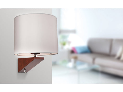 This elegant wall light combines a rich dark walnut back plate with a soft cream shade for a warm and sophisticated touch. The neat chrome toggle s...