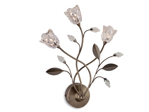 The Cindy 3 Light Wall features an elegant, contemporary design with intricate flower and leaf effects made from a combination of metal and clear g...