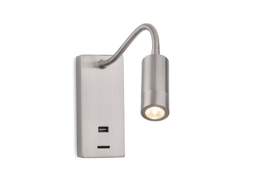 Clifton LED Flexi Wall Light with USB Port - Brushed Steel