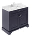 The striking finish of this Twilight blue unit will add contrast and impact to your traditional bathroom This unit has soft close doors which limits the daily wear and tear and provides a quieter closing action Supplied rigid for easy installation and with stunning White marble top basin