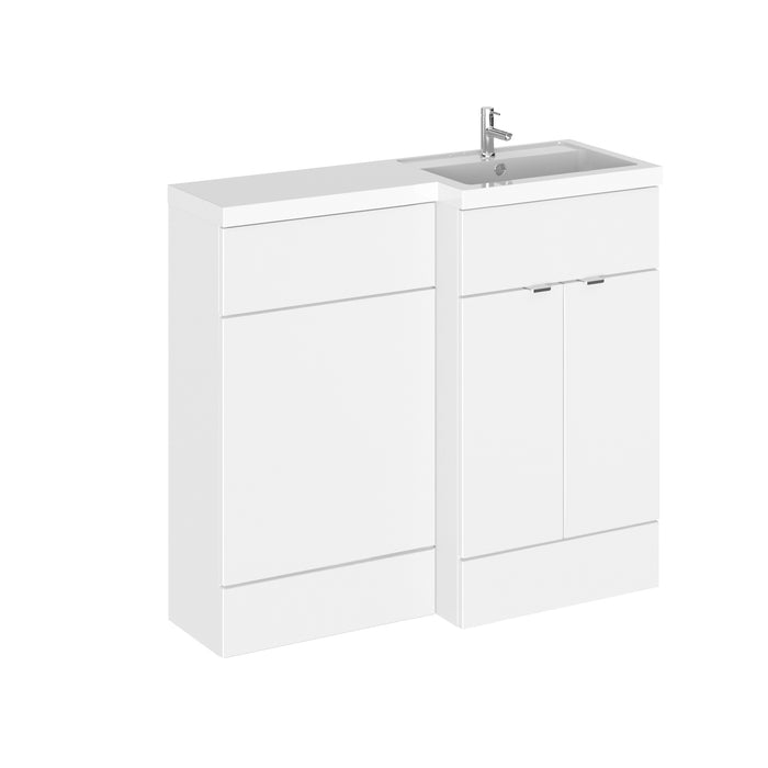 The simplistic style of the gloss white finish blends seamlessly with our range of polymarble basins Our full depth units give ample storage, perfect for a busy family bathroom Our ready built combinations save on time and make your life easier