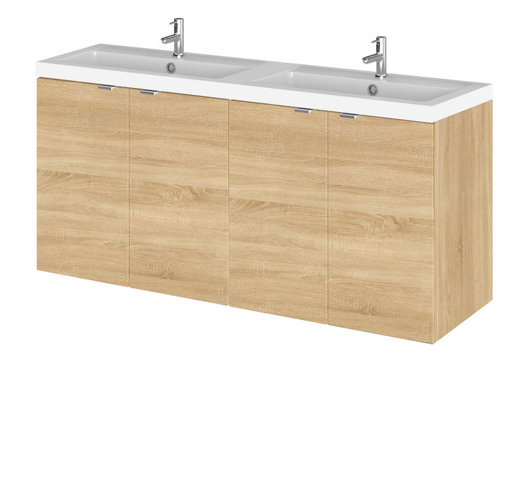 The calming effect of this natural oak unit creates seamless contrast with our range of polymarble basins. Our full depth units provide ample storage, perfect for a busy family bathroom Our ready built combinations save time and make your life easier This wall hung design makes cleaning your bathroom even simpler Supplied with double polymarble basin All of our Fusion range is supplied with soft close doors and drawers as standard