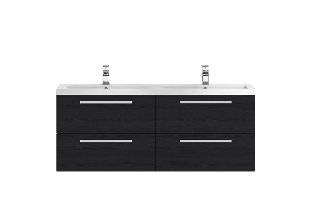 The charcoal Black finish features a textured wood grain which softens the harsh black with a range of different tones This wall hung unit creates the illusion of a bigger bathroom while providing a practical storage solution This unit has soft close drawers which limits the daily wear and tear, providing a quieter closing action This product is made here in Britain to the highest quality standard Supplied with luxury polymarble basin