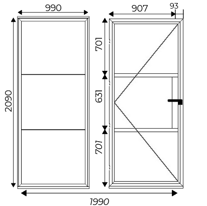- Overall Door Size: W1000mm x 2090mm / Overall Side Flags Size: W990mm x 2090mm