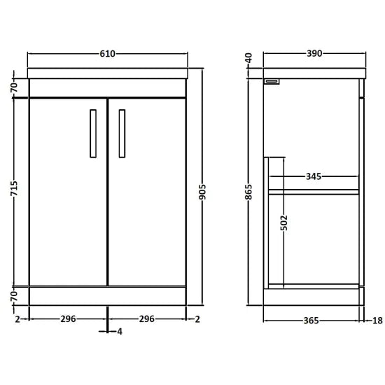 Athena Floor Standing 2 Door Vanity With Mid-Edge 1 Tap Hole Basin 600mm