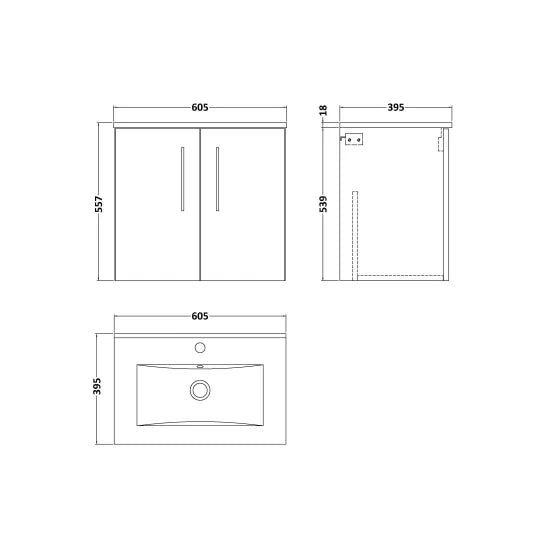 Arno 600mm Wall Hung 2-Door Vanity or Minimalist Basin