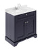The striking finish of this Twilight blue unit will add contrast and impact to your traditional bathroom This unit has soft close doors which limits the daily wear and tear and provides a quieter closing action Supplied rigid for easy installation and with stunning White marble top basin