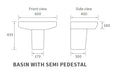Amara 600x400mm 1TH Basin & Semi Pedestal