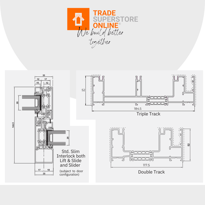 We also offer bespoke sizes for our aluminium sliding door system. If you’d like a quote for a bespoke size, please email hello@tradesuperstoreonline.co.uk with height, width and colour and we can provide a price for you.
