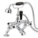 Transform your bathroom with the Old London Black Topaz With Crosshead Handle Bath Shower Mixer. This elegant bath shower mixer blends classic design with modern functionality, featuring a striking chrome and black finish. The luxury crosshead handles with colored indices and traditional domed collar bring a timeless charm to your space, while the included shower kit adds versatility to your bathing routine.