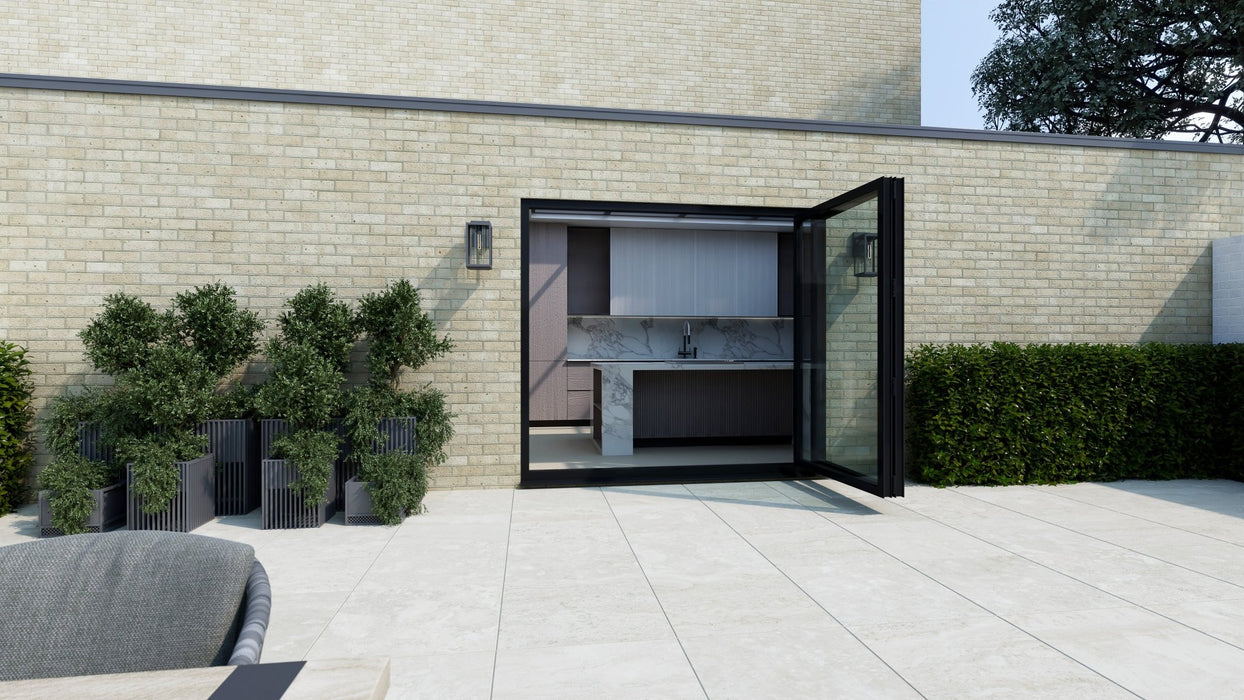 The external bifold doors include a thermal break to provide high thermal performance and energy efficiency. Further to this, their multi-point lock mechanisms on the main opening sashes provide assurance for top security while the doors are also secured by shoot-bolt locks on the floating mullions.