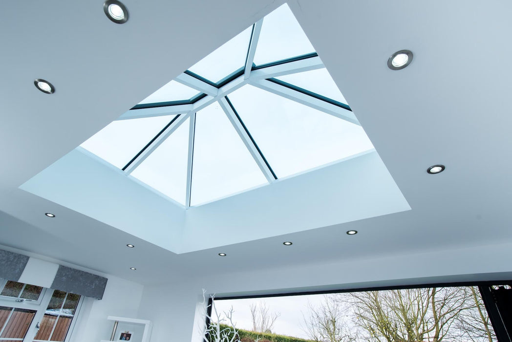 Black on White Korniche Aluminium Roof Lantern – AMBI Blue or Clear Glass