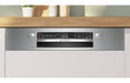 Experience premium cleaning performance with the Bosch Series 2 SMI2HTS02G Semi Integrated 13 Place Dishwasher, designed for efficient, quiet, and intelligent dishwashing. With space for 13 place settings and a 46dB noise level, this dishwasher combines performance and peace. Its D energy rating and 9-litre water usage per cycle make it a smart, eco-friendly choice for modern homes. Enjoy enhanced convenience with Home Connect—control your dishwasher remotely and access additional features. The EcoSilence Drive™ motor ensures whisper-quiet operation, while Extra Dry handles those hard-to-dry items with ease. Plus, the height-adjustable top basket provides extra flexibility for taller dishes. Finished in sleek stainless steel, this Bosch dishwasher blends perfectly into any contemporary kitchen and comes with a 2-year manufacturer’s guarantee for added peace of mind.