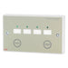 The 4 Zone Call Controller is a versatile and efficient emergency call management unit designed to support up to four separate zones. Featuring dedicated RESET and MUTE buttons along with four zonal alarm LEDs, it offers clear status monitoring and control. This controller requires a separate 12V 250mA power supply unit (NC930) for operation and supports the connection of up to two controllers per PSU, allowing the creation of a mini-call system with up to eight zones. Designed for easy installation, it mounts neatly onto a standard 25mm UK double gang back box, making it ideal for centralized fire alarm or emergency call systems.