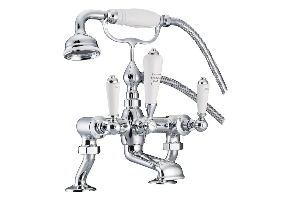 Enhance your bathroom with the Deck-Mounted Bath Shower Mixer, an elegant addition that seamlessly blends traditional design with modern functionality. This bath shower mixer, featuring 1/4 turn ceramic discs, ensures a smooth and luxurious experience. The classic headset and spout provide dual functionality, making it perfect for both bath and shower use. Available in three stunning polished finishes, this mixer tap adds a touch of luxury to any bathroom.