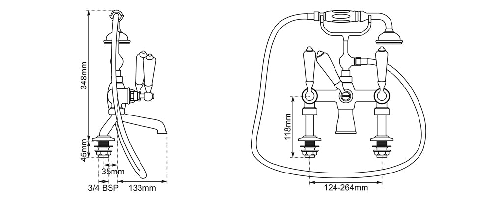 Hurlingham Lever Deck-Mounted Bath Mixer Taps With Cranked Legs - 124-264x348mm