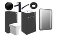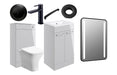 Elevate your bathroom with the sleek and modern Pulse 510mm F/S Furniture Pack w/Black Finishes. This contemporary furniture pack includes a 510mm floor-standing 2-door basin unit with basin, a 500mm floor-standing WC unit, and a rimless back-to-wall WC with a wrapover soft close seat. Finished with matt black accents, including a basin mixer and D-shape handle, this pack also features a FREE colour-coordinated 500x700mm back-lit LED mirror. Designed for style and functionality, it comes with a 5-year guarantee on furniture and a lifetime guarantee on the toilet.