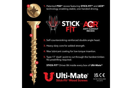 Ulti-Mate® Stick-Fit® Wood Screws 5.0 x 100mm Qty 300