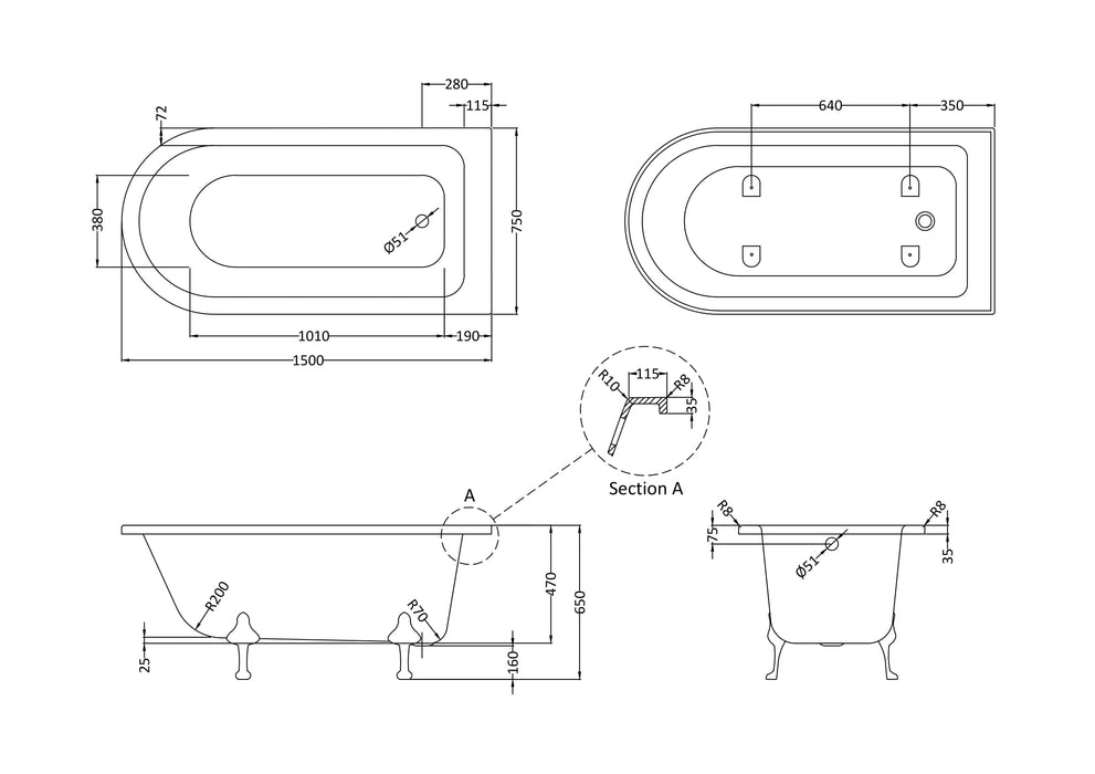 - All baths come supplied with leg sets as standard