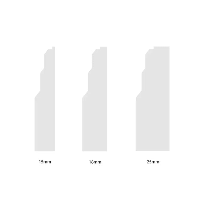 Available in lengths of 3040mm and 4200mm, and a variety of thicknesses, the Stepped MDF Architrave caters to your specific needs. Choose from unprimed MDF, primed white MDF, or luxurious real wood options in oak or walnut. Made from moisture-resistant MDF, this architrave ensures durability and is ideal for bathrooms and other areas exposed to moisture, avoiding the common issues found in natural timber.