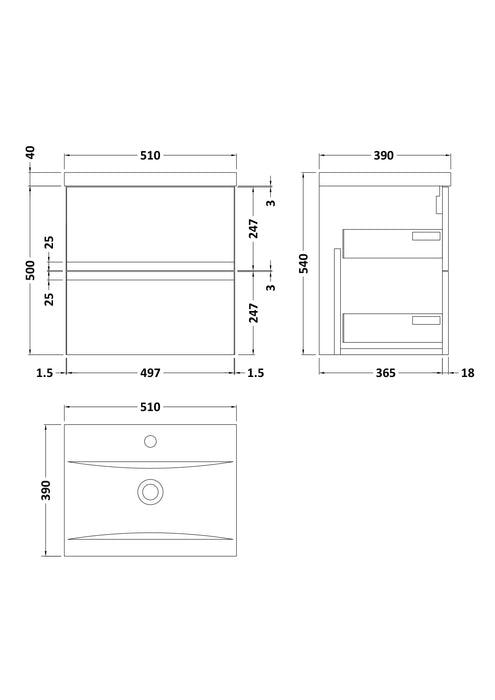 Urban Wall Hung 2 Drawer Vanity & Mid-Edge Ceramic Basin, 500mm