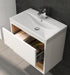 This range features the latest technology of push open doors and drawers Supplied rigid for easy installation The contrasting open shelf offers a stylish storage solution in any bathroom Colour co-ordinate your unit with a WC unit Ceramic basin pre-drilled with 1 tap hole