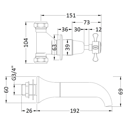 Upgrade your bathroom with the Old London White Topaz Wall Mounted Bath Spout & Stop Taps. Featuring elegant crosshead handles with colored indices, this stylish set combines classic design with modern functionality, making it a perfect choice for a timeless and sophisticated bathroom.